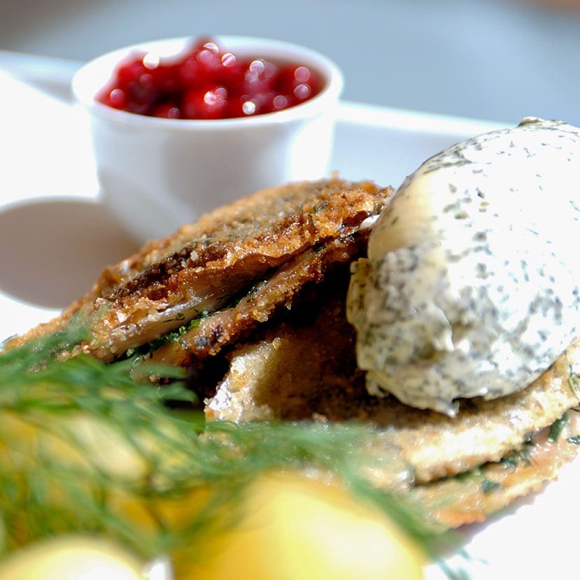 serveras med klassisk tartarsås toppat med krispigt trassel och krasse